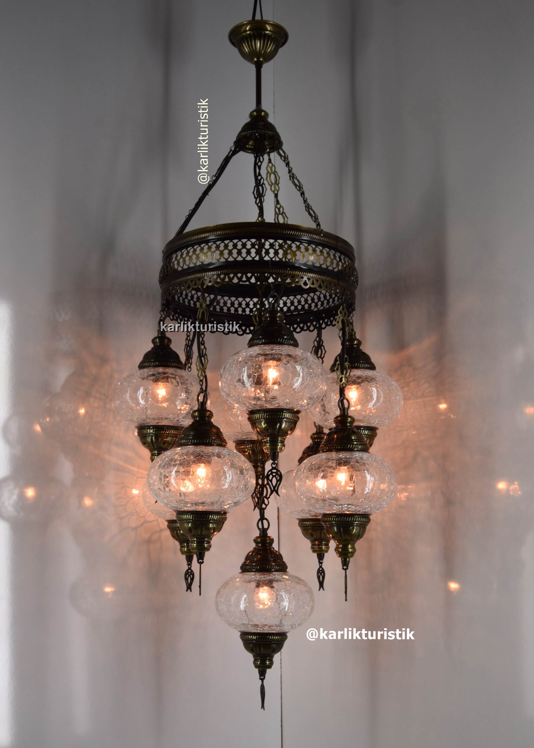 Geleneksel Avize,Türkiye’den El Yapımı Türk Lambası 9 Kırık Cam,Ev aydınlatmaları,Dekor Lambalar,Türkçe Avize 8+1 I-S-C-5311