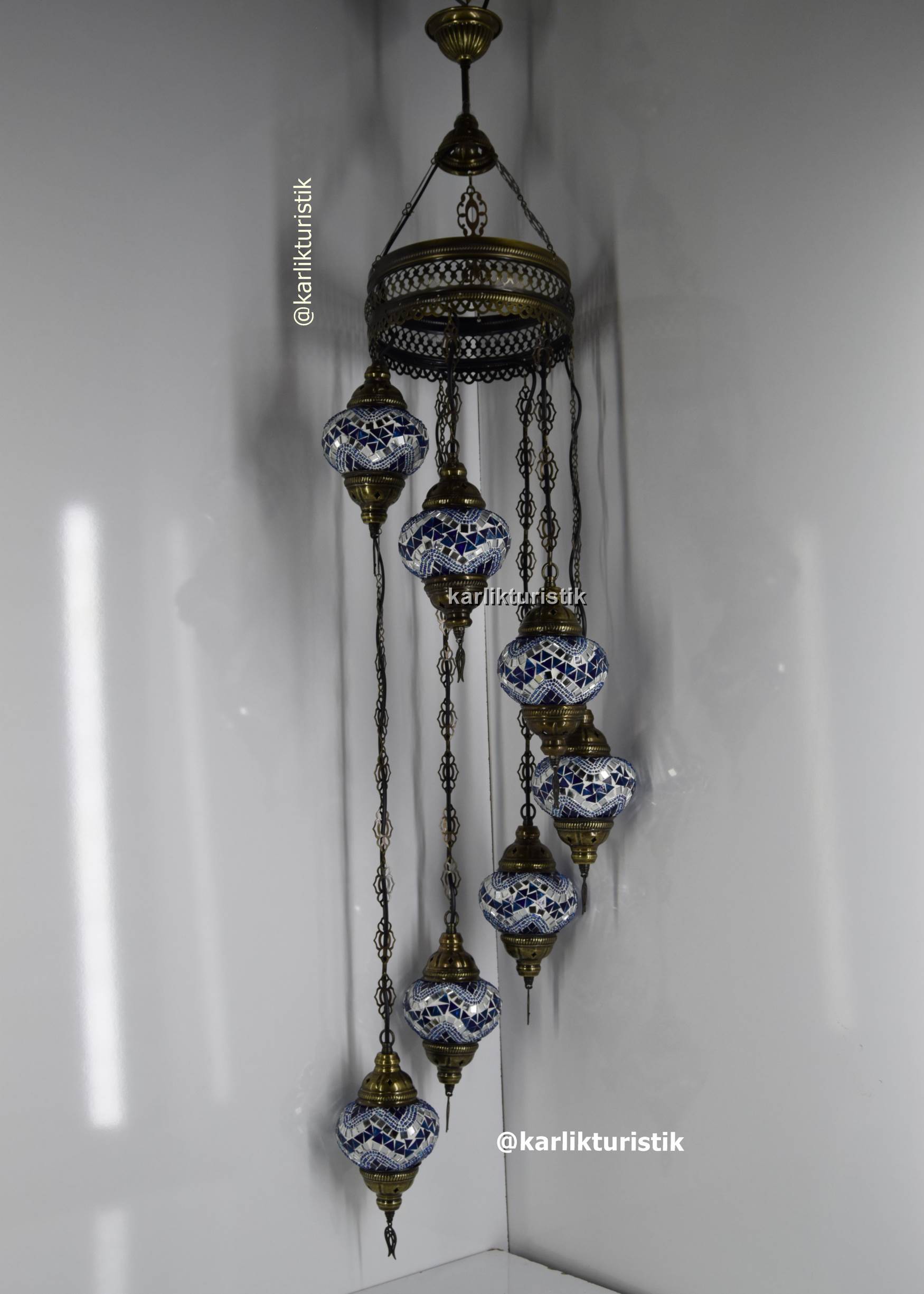 Türk mozaik lambaları veya Türk fenerleri olarak da bilinen Türk lamba avizeleri, geleneksel işçiliği modern tasarımla kusursuz bir şekilde harmanlayan zarif sanat eserleridir. Bu eşsiz ve büyüleyici armatürler, yüzyıllardır ev dekorunun ayrılmaz bir parçası oldukları Türk ve Orta Doğu kültürlerine dayanan zengin bir tarihe sahiptir. Türk lamba avizelerinin belirleyici özelliklerinden biri de kendine özgü mozaik desenleridir. Bu desenler, renkli, elle kesilmiş cam parçalarının karmaşık tasarımlar oluşturacak şekilde dikkatlice düzenlenmesiyle yaratılıyor. Cam genellikle metal çerçevelere yerleştirilmiştir; her bir parça, lamba aydınlatıldığında büyüleyici bir ışık ve gölge oyunu yaratacak şekilde titizlikle yerleştirilmiştir. Sonuç, her mekana sıcaklık ve ambiyans katan bir renk dürbünüdür. Türk lamba avizelerinin yapımındaki işçilik, zanaatkarların becerisinin ve özverisinin gerçek bir kanıtıdır. Her parça el yapımı olduğundan hiçbir lambanın tam olarak aynı olmaması sağlanır. Bu sadece onların çekiciliğini arttırmakla kalmıyor, aynı zamanda onları benzersiz ve kişiselleştirilmiş sanat eserleri haline getiriyor. İşçilik sürecinde detaylara verilen önem, mozaik desenlerin hassasiyetinde ve kullanılan malzemelerin kalitesinde açıkça görülmektedir. Türk lamba avizeleri genellikle geleneksel Türk ve İslam sanatından ilham alan canlı renklere ve geometrik şekillere sahiptir. Tasarımlarda bölgenin kültürel ve sanatsal etkilerini yansıtan yıldız, çiçek, hat sanatı gibi motifler yer alabilir. Bu lambalar sadece aydınlatma armatürleri değil, aynı zamanda kültürel mirasın ve sanatsal ifadenin de ifadesidir. Türk lambalı avizelerin çok yönlülüğü estetik çekiciliğinin ötesine geçiyor. Bohem ve eklektikten daha geleneksel veya çağdaş ortamlara kadar çeşitli iç mekan stilleri için uygundurlar. İster büyük bir fuayede asılı olsun, ister yemek odasını süsleyin, ister rahat bir köşeyi vurgulayın, Türk lambalı avizeler herhangi bir alanı görsel olarak büyüleyici ve davetkar bir ortama dönüştürme yeteneğine sahiptir. Türk lambalı avizeler, görsel çekiciliklerinin yanı sıra sıklıkla çeşitli boyutlarda üretilmekte ve farklı oda boyutlarına uyacak şekilde kişiselleştirme olanağı sağlamaktadır. Çerçeveler için pirinç, bakır veya dövme demir gibi malzemelerin kullanılması, zaten büyüleyici olan bu armatürlere dayanıklılık ve incelik katıyor. Türk lambalı avizeye sahip olmak sadece bir parça aydınlatma elde etmek değildir; kültürel bir mirası kucaklıyor ve geçmiş bir dönemin sanatını kutluyor. Bu zamansız parçalar, dünyanın dört bir yanındaki evleri büyülemeye ve aydınlatmaya devam ediyor ve Türk zanaatkârlarının zengin geleneklerine ve işçiliğine bir bakış sunuyor.